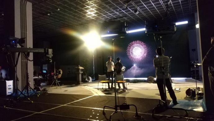 背景をコンピュータ内で合成するグリーンバック方式と違って、映像撮影で大変重要な照明に関して、同じ照明を用いる点は、利点の1つです。