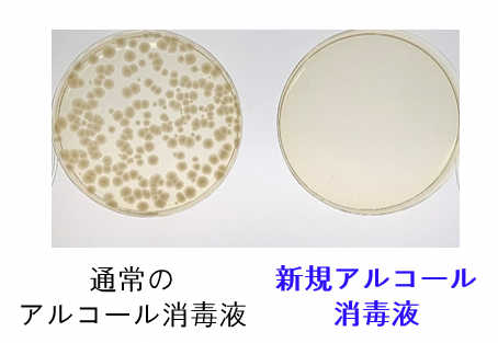 そこで、保湿作用の高い肌に優しい物質をアルコール消毒液に配合することで、セレウス菌の芽胞形成を阻害し殺菌する技術を開発しました。
