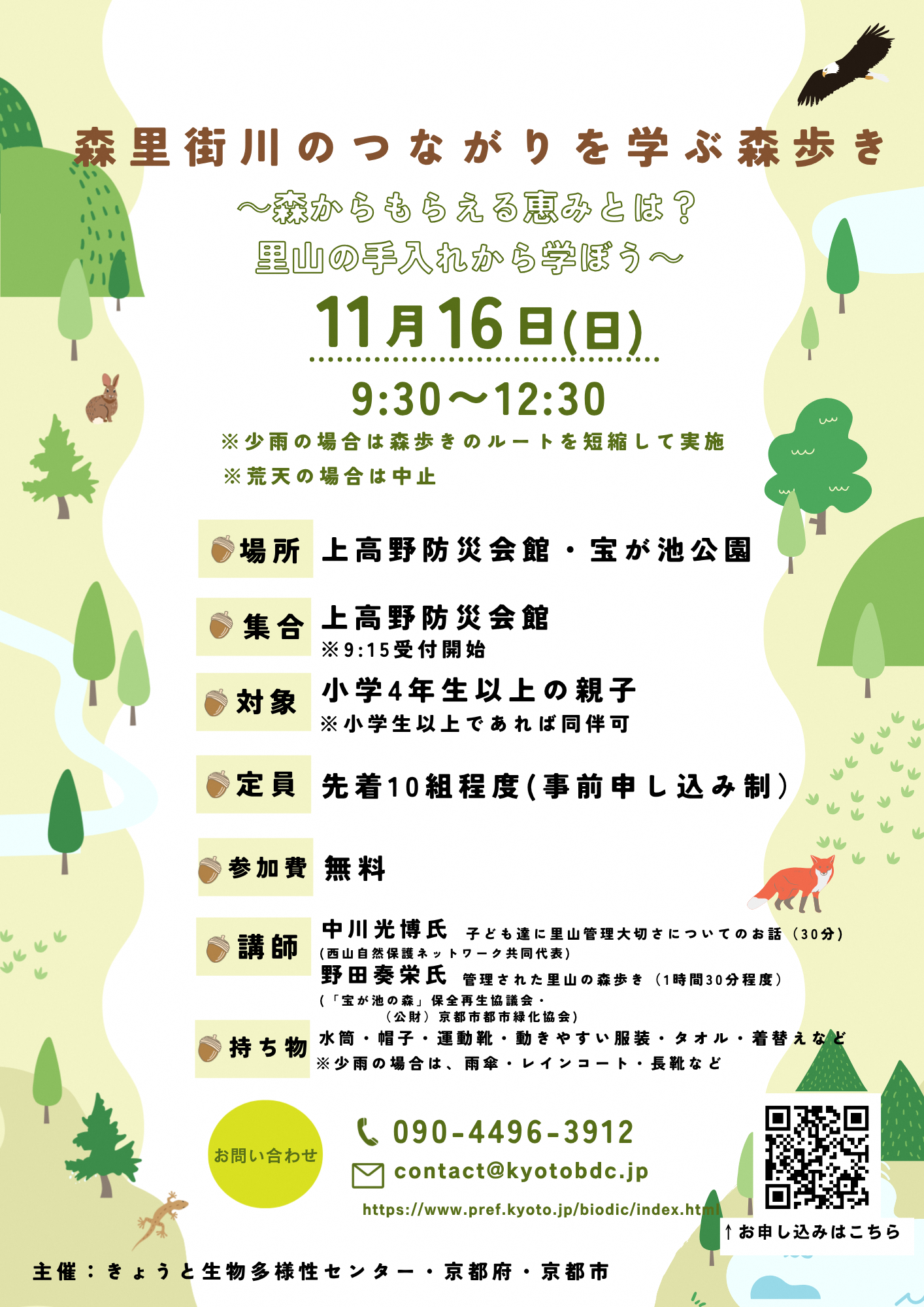 少雨:森歩きのルートを短縮して実施、荒天:中止