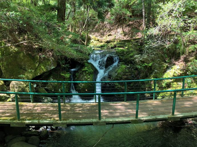 双龍淵のところにつり橋があります。つり橋を渡った先にトイレと休憩所があります。ここで一旦ひと休み。