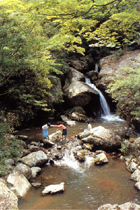 南丹市園部町の南西部、標高500メートルの高原に位置する、るり渓。その清流と両岸の自然林がつくり出す繊細な景観は、四季をとおして観光やレジャーに訪れる人々を楽しませています。