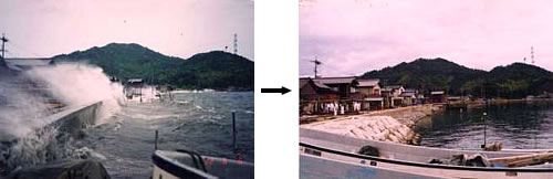 台風や津波等の災害から住民の生命と財産を守り、安心して暮らす事ができる漁村づくりを進めています。