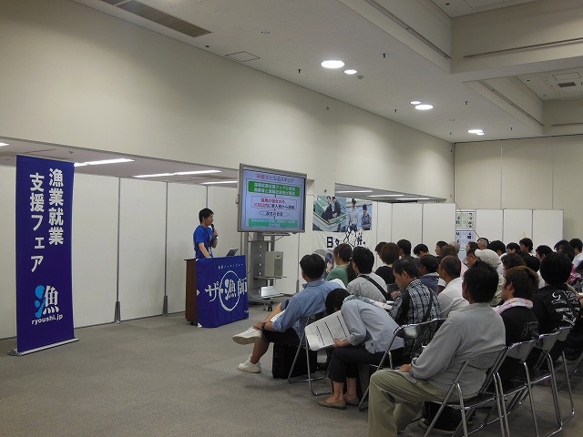 会場には漁業就業全般についての疑問に答えるフェア主催の総合相談ブースの他、各道府県からの出展団体ブースがあり、漁業のガイダンス、漁具の展示などが行われ、188名の来場者数により、終始賑やかなフェアとなりました。