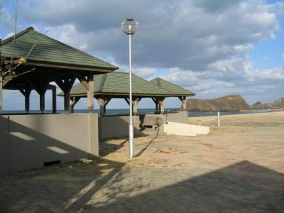 後ヶ浜海岸に沿って遊歩道があり、その各ポイントにトイレ、休憩所が整備されています。
