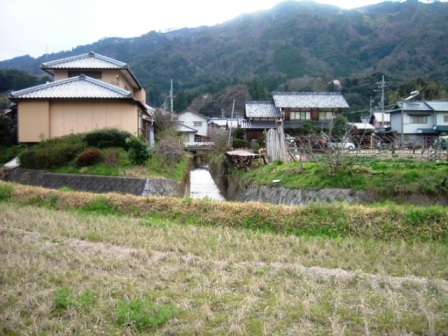改修前の善光橋と大手川。橋の右奥に以前の地蔵堂が見えます。