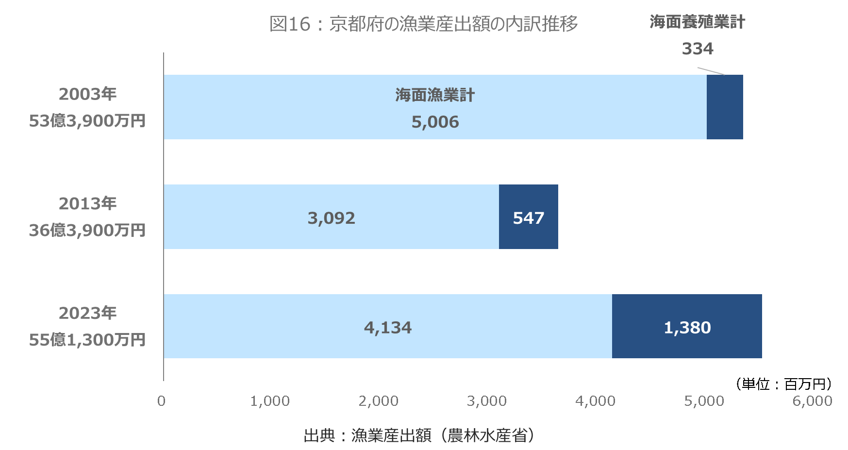 2023年の京都府の漁業産出額は55億1,300万円です。