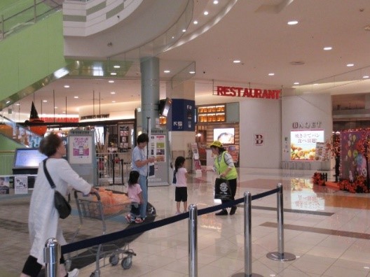 管内にあるショッピングモールにおいて夕方、帰宅途中の学生や、買い物の一般住民に対して、啓発資材の配布と声かけの活動を実施しています。