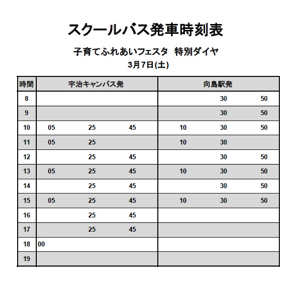 大学のシャトルバスを運行します。近鉄京都線向島駅下車、無料スクールバスで5分