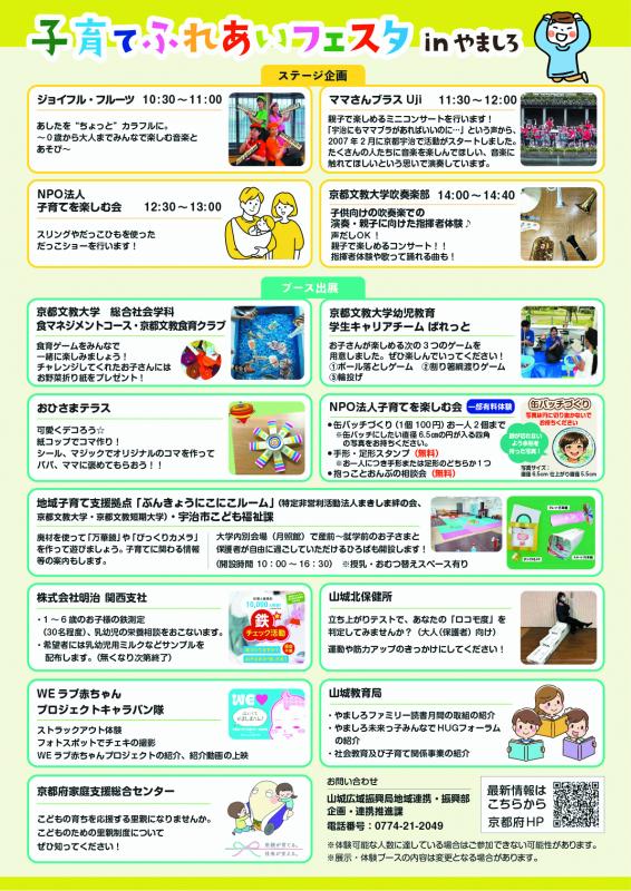 令和8年3月7日(土曜日)、京都文教大学内の会場で「子育てふれあいフェスタinやましろ」を開催します。